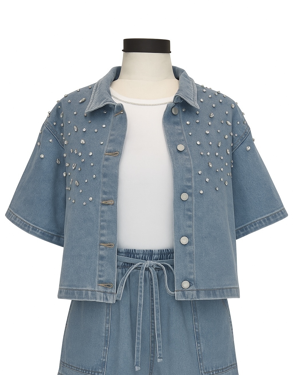Chaqueta de denim con apliques de brillos.